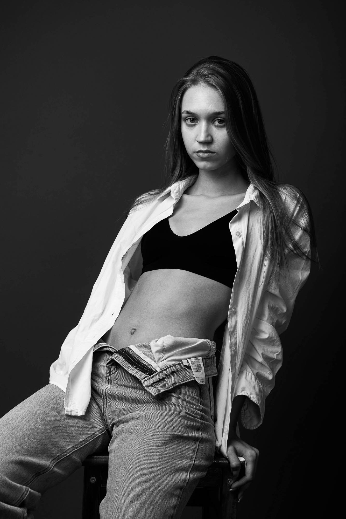 Профессиональная съемка модельного портфолио в студии.