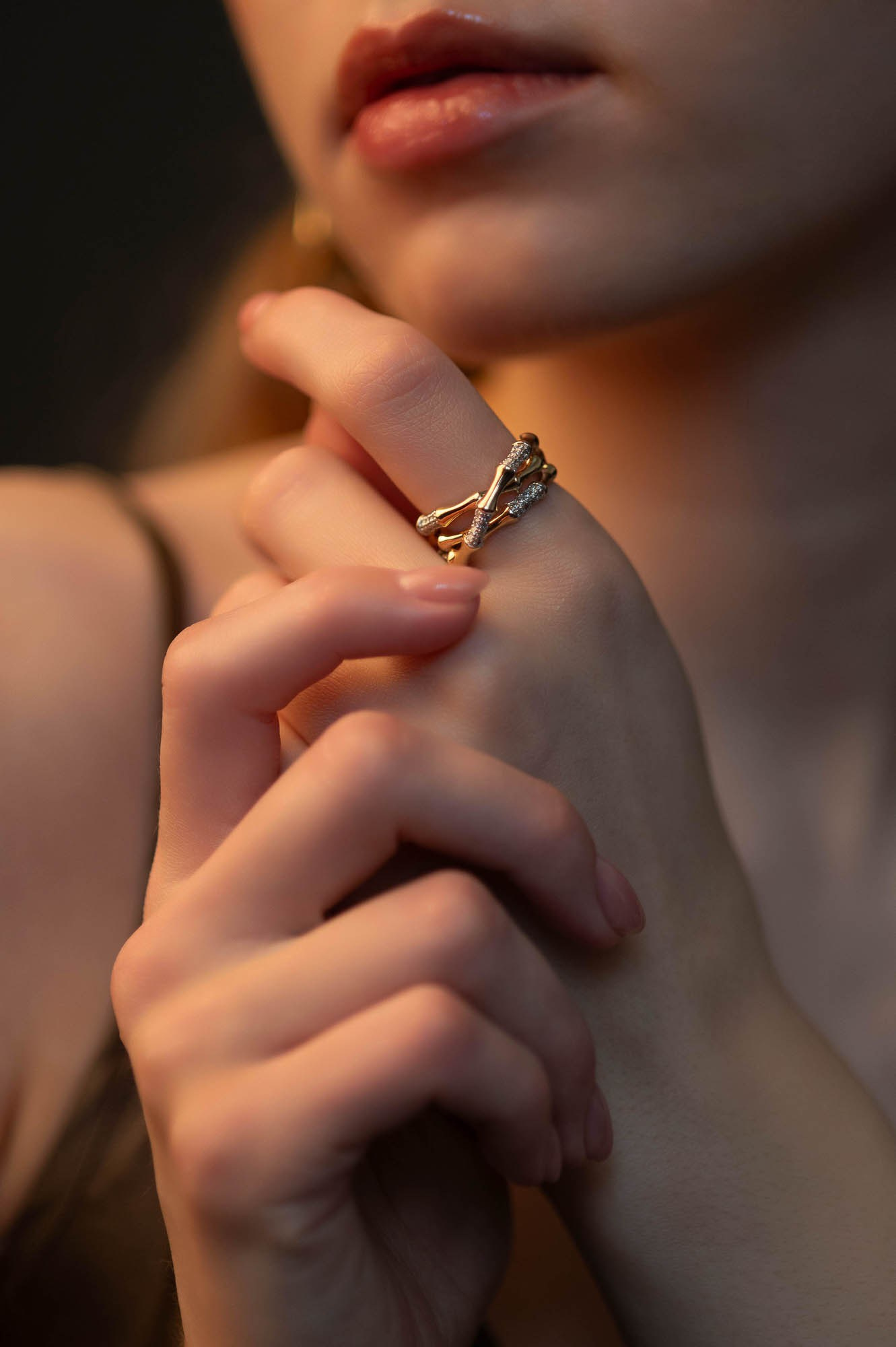 Художественная подача ювелирных изделий с акцентом на эксклюзивность, статусность и эмоциональное воздействие. Каждый кадр — произведение искусства, подчеркивающее уникальность и ценность изделия.